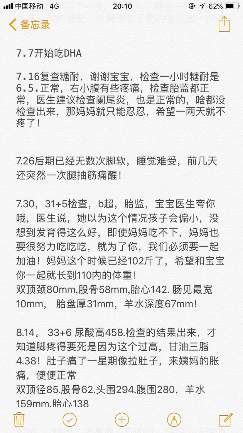 好详细啊!我都没怎么记但是相信每个孕妈都爱自己的孩子