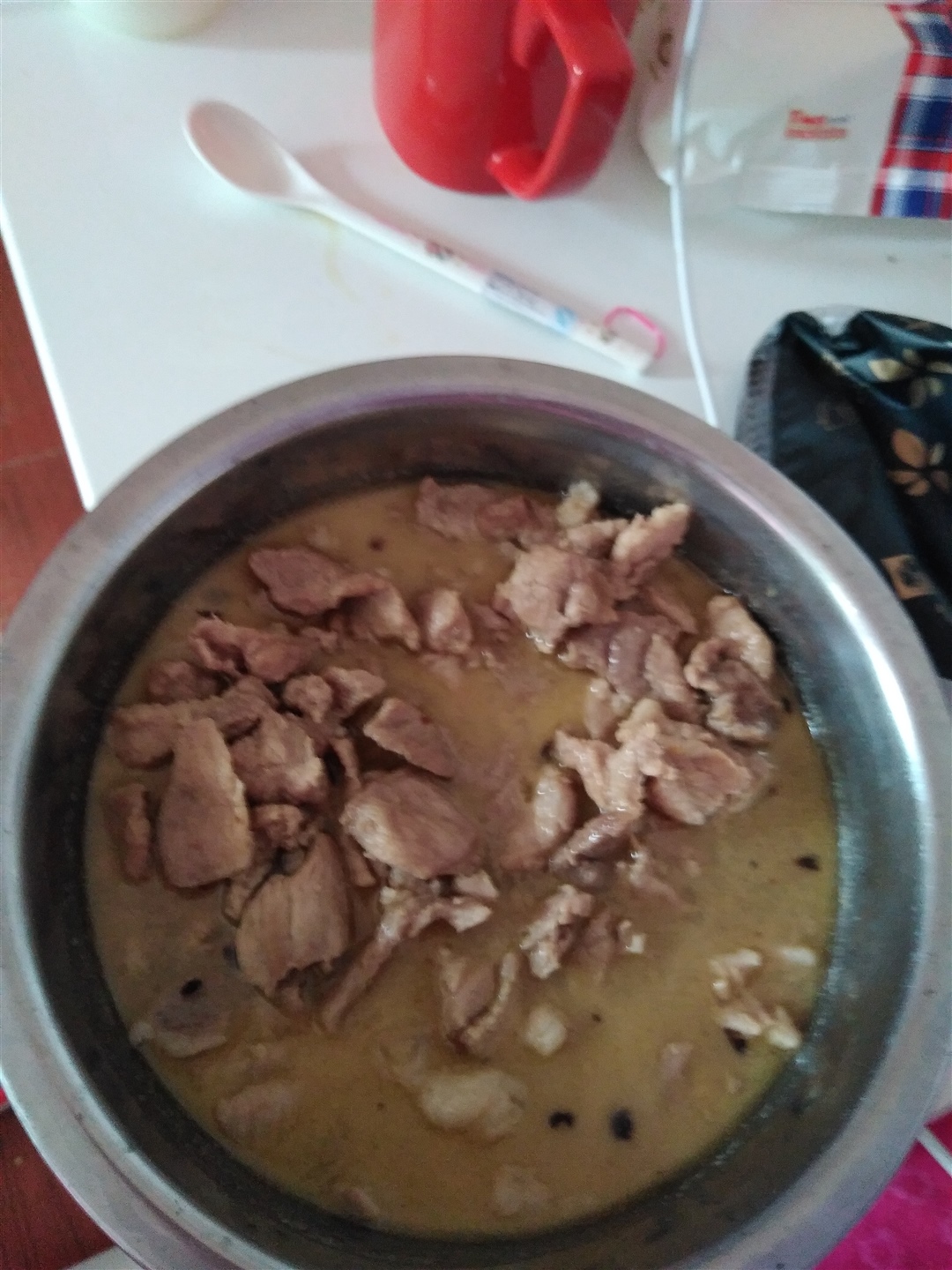 可能是吵完上一个菜 锅里没刷干净,然后在做这个肉汤就会有黑色的点