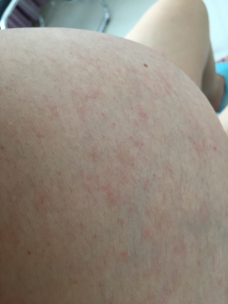 怀孕用户3WUZ[帖主]:去医院看过,分别看了两家,一个医生说是过敏性红斑,一个医生说是孕晚期体内发生变化引起的,也给开了药,但是没啥效果