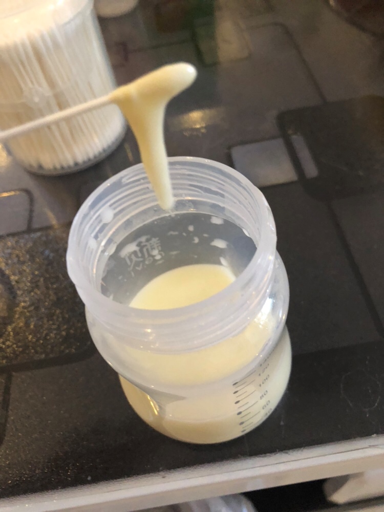 是直接吸出来的?是你放久了结的奶痂吧?