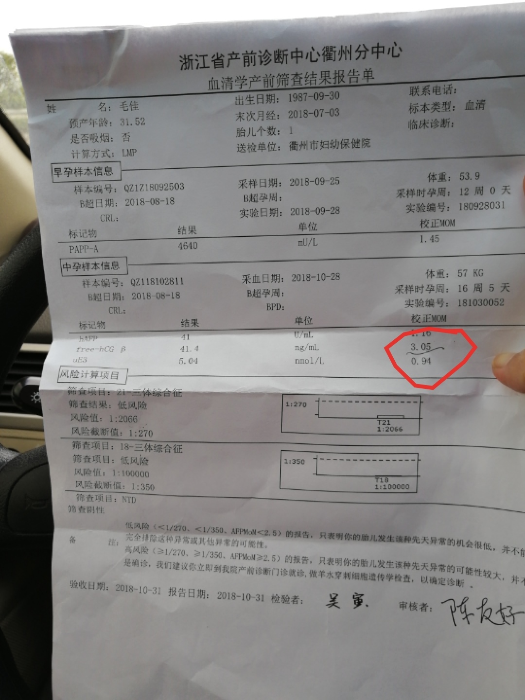 我这个值3.12,21三体临界高风险,做了无创都是低风险,没问题的,我还特地问了医生这个值怎么会高这么多,医生说不要紧的