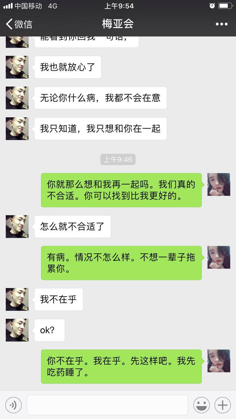 说句真心的感受.有两种可能.一种就是他确实很喜欢你.而且也不知道你的病到底会怎样就算在一起之后时间久了他发现接受不了你的病再离开也可以;再一种可能就是单纯的男女之间的吸引.毕竟他还什么都没得到呢.就见了两次面他就算说的再好听等得到了他想要的他也不必再为你负责.个人想法.希望能给你参考