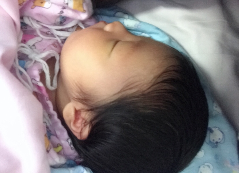 我家宝宝生下来头发也特别好,又黑又多。