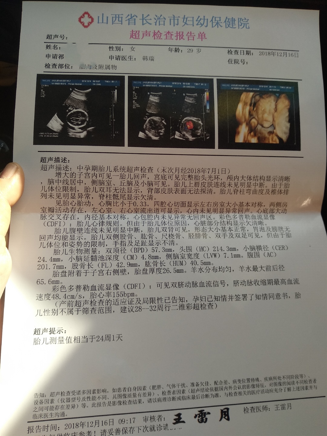 接腹中宝宝四维大排畸顺利通过