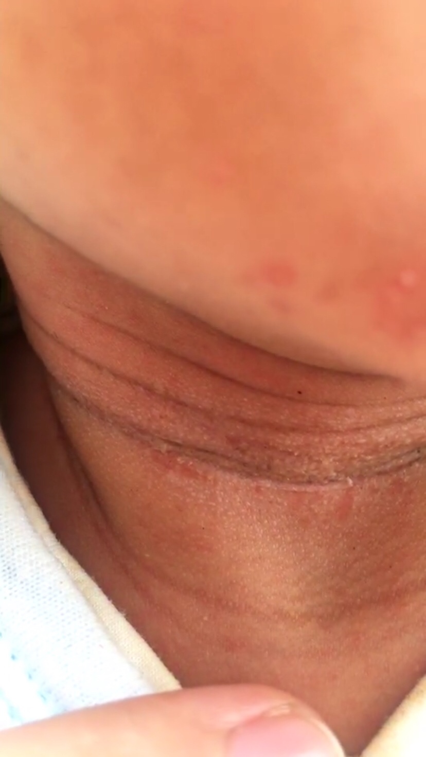 不要擦痱子粉一定不要 会烂得严重 我女儿小时候这样就给涂得金霉素软膏 洗澡擦干后不要扑粉