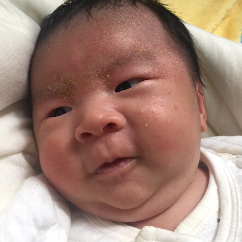 这是捂着了,太热, 每天要用毛巾给宝宝洗脸! 脸部保持干燥!买瓶 炉甘石 几块钱,涂上
