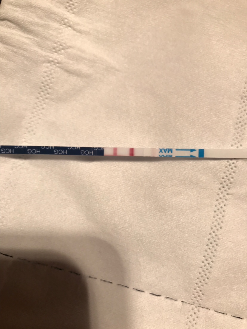 我是11月22的末次月经,24号就用试纸验了,非常明显的两杠,直接就去医院验血了,验血是怀孕了,医生让我一周后再去B超