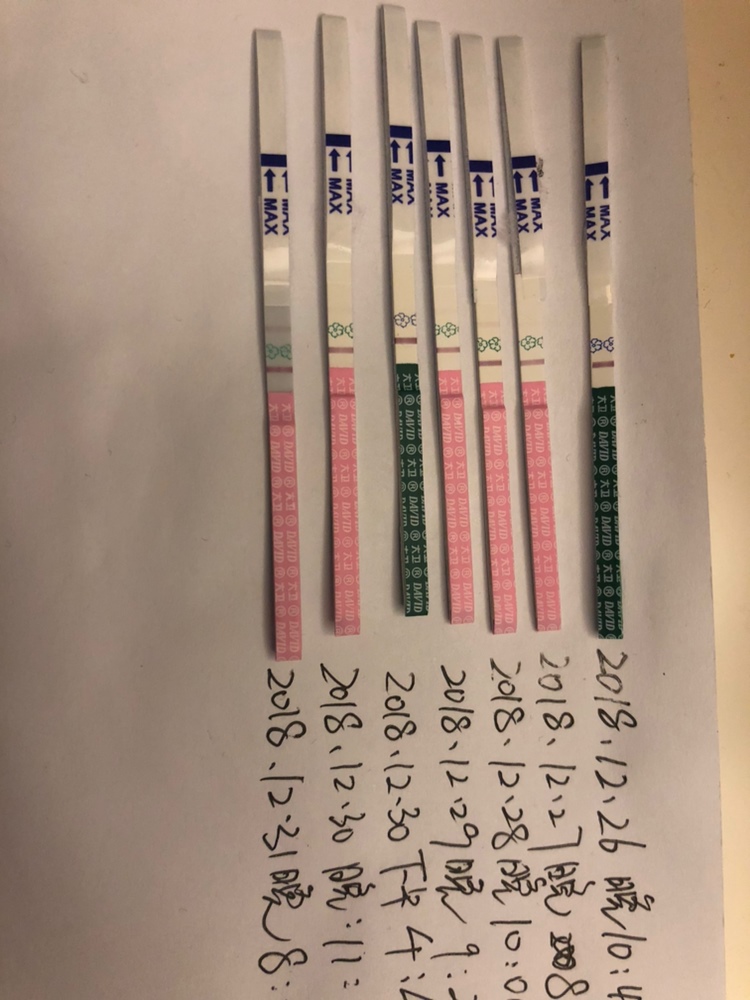 以过来人的经验说下,目测最后一个试纸已经怀上了!