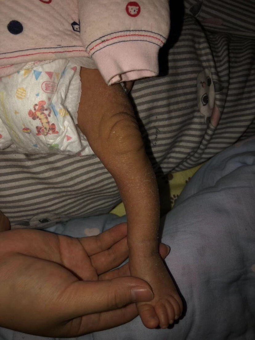 你宝宝出生多重,我家闺女出生时才5.9斤,腿很小也有这么弯,差不多两个月时候长肉腿就很直了
