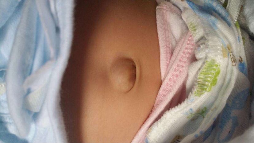 应该是哭厉害,肚脐突出了,得赶紧用一块钱的硬币包着纱布放在肚脐那里压着,你们社区的医生都不讲这些的吗?