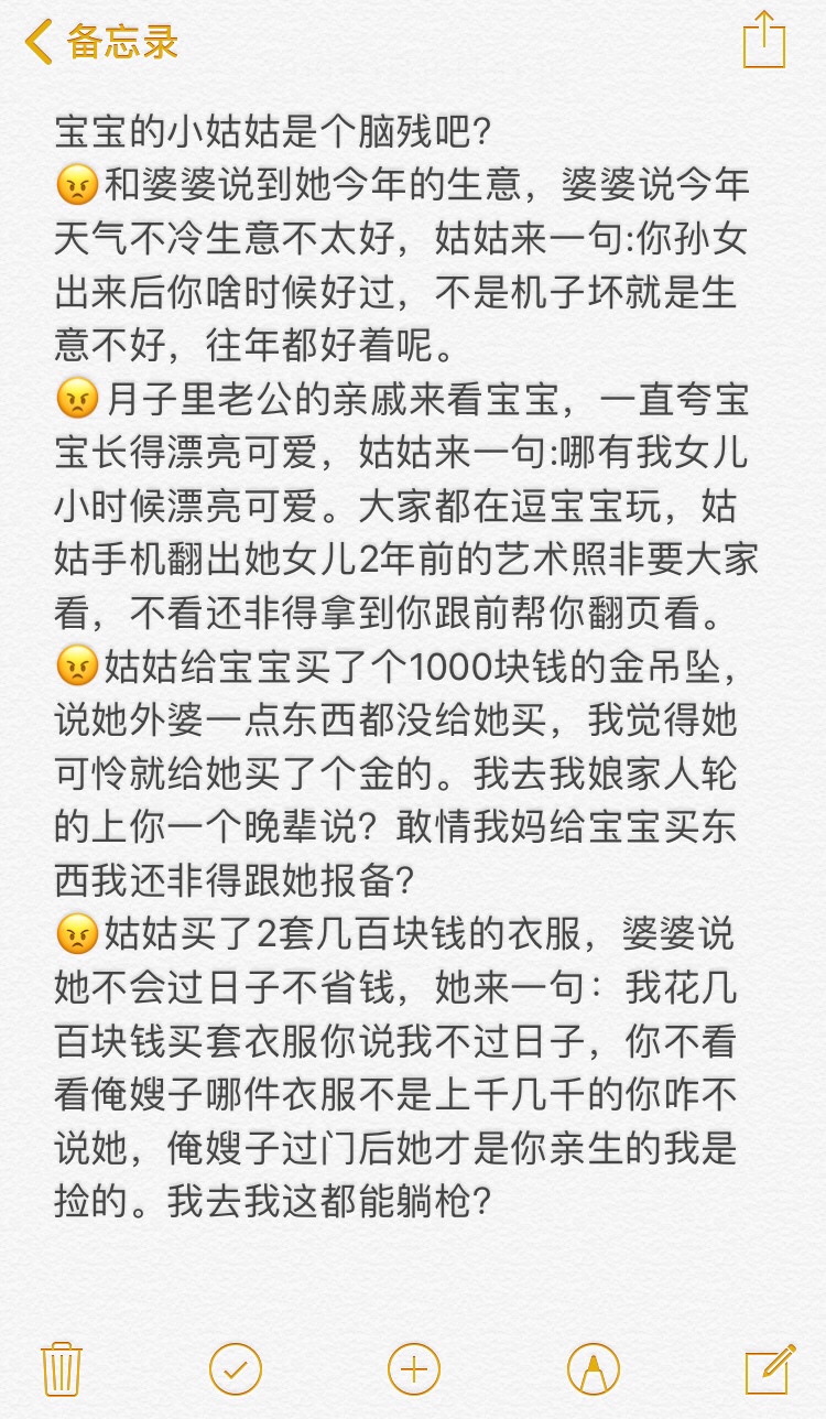 噜噜噜噜啦[帖主]:一开始不想跟她一般见识,奶奶来看宝宝她每次都要带着自己女儿跟着来,来一次气我一次回奶,气的我和老公说不欢迎她来。