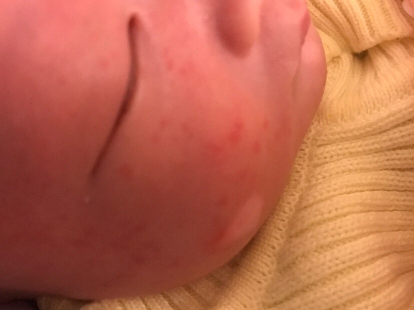 湿疹吧,淘宝买戒之馆婴亲霜超级好用,我女儿以前满脸都是,擦几次就好了