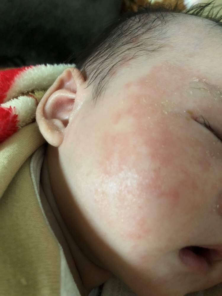 湿疹,我家也是,去看看医生吧!一般都是开个药膏,一个保湿的,要注意保湿,不要热到了