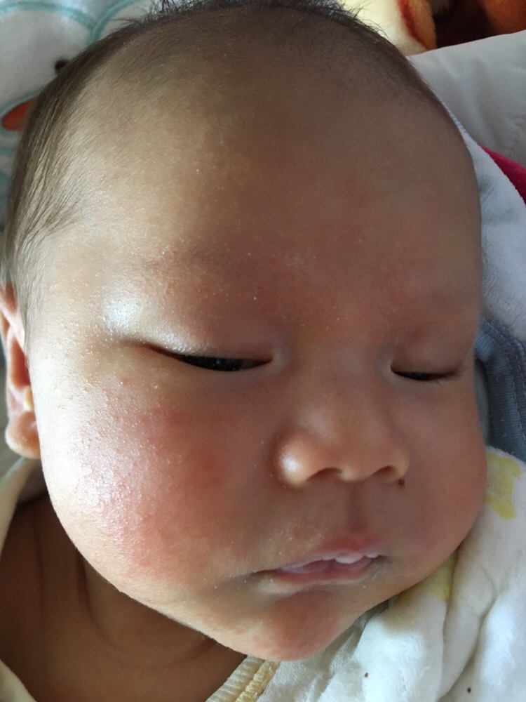 湿疹,你这个跟我宝宝差不多,不严重,慢慢就会消的,不用看医生,实在不放心就擦点红霉素软膏