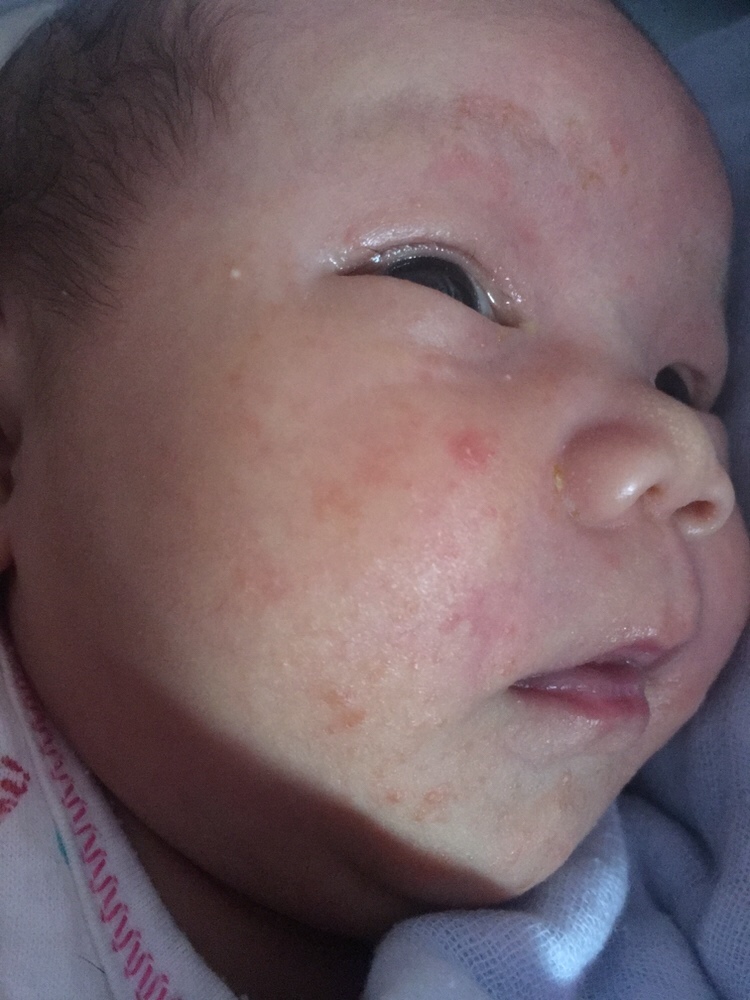 这是湿疹还是新生儿痤疮你要找医生鉴别一下