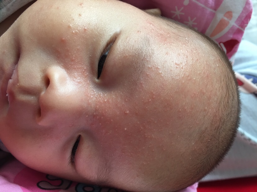 我家宝宝前几天和你家宝宝脸上一模一样,看的我难受心疼,后来回娘家我妹来给我带了一个药膏是她家宝宝之前湿疹用的可好了,我家宝宝当天晚上搽第二天就少很多,叫宝宝专用,不知道你们那边有卖的吗,你可以找找,真心好