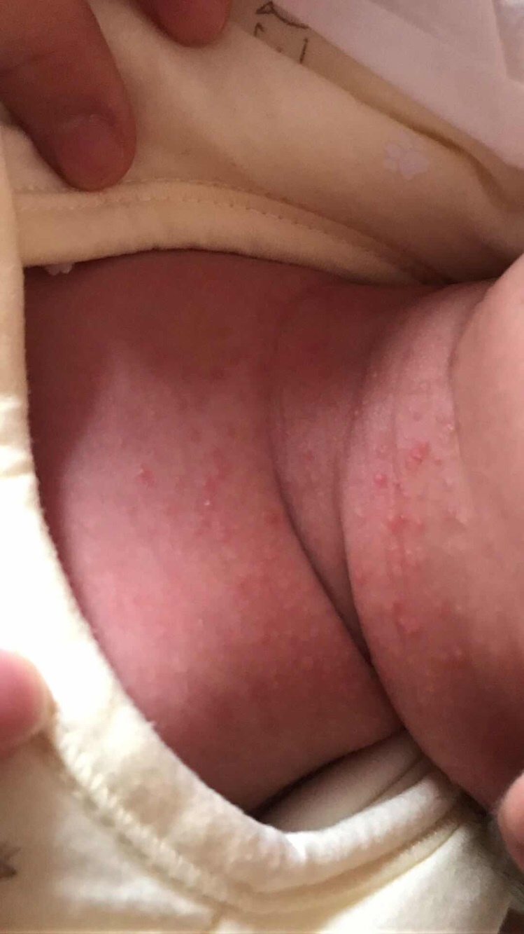 是不是热了?注意别穿太多,宝宝怕热,洗澡水35度,注意保湿,擦保湿霜