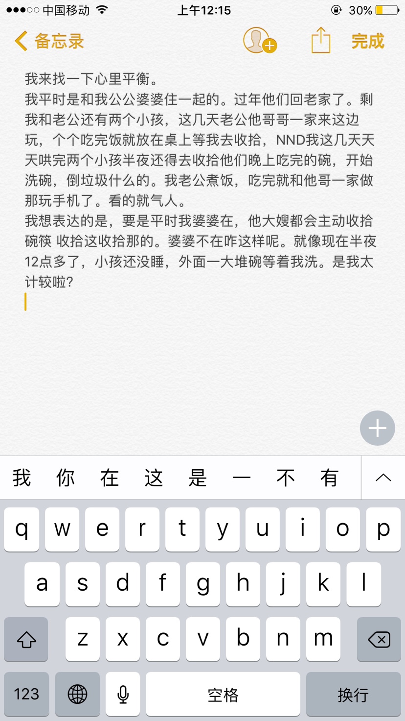 wanysys[帖主]:是呀。主要是以前我婆婆在她会抢着收拾什么的嘛,这样一下我就觉得不舒服。我要是没有要哄小孩我肯定无所谓,我现在得哄完宝宝半夜困的要死还得去收拾。就是发泄一下,我以为是我太计较了。