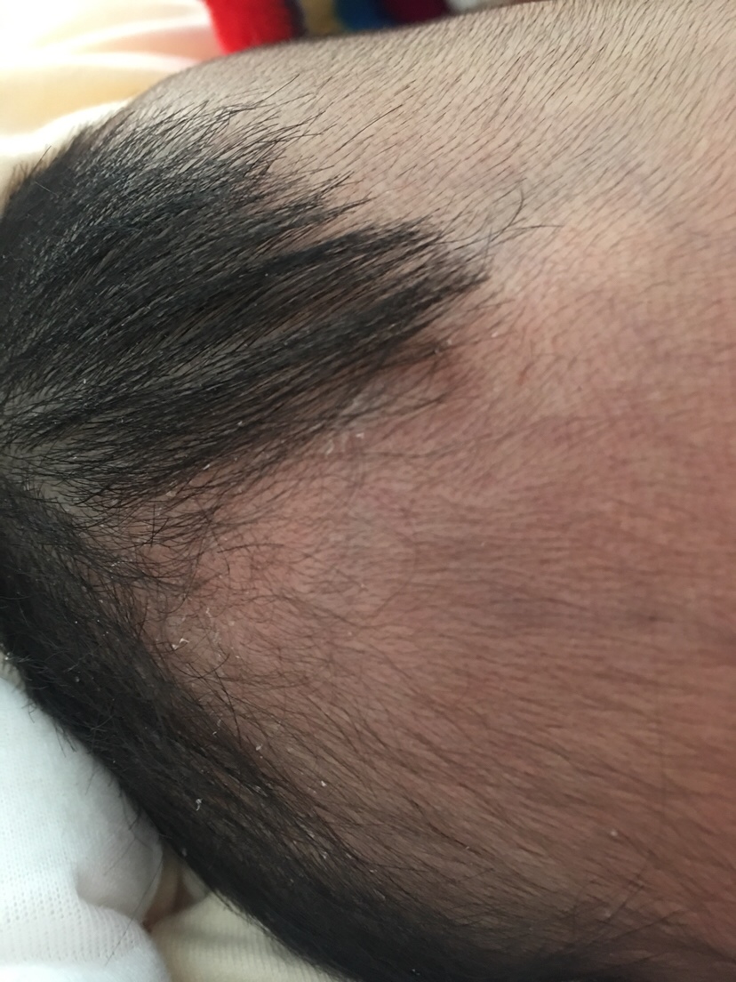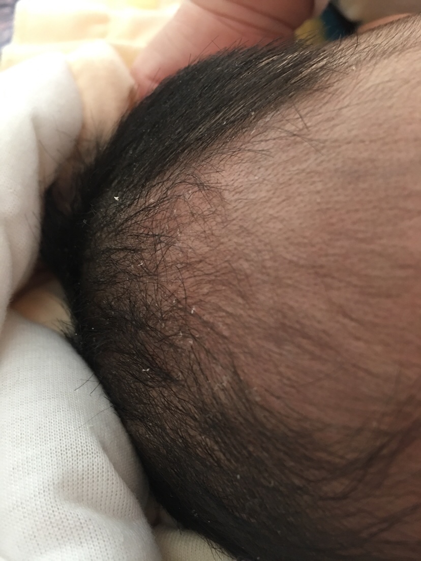 胎皮,大部分都有,不用处理。过几个月就没了。