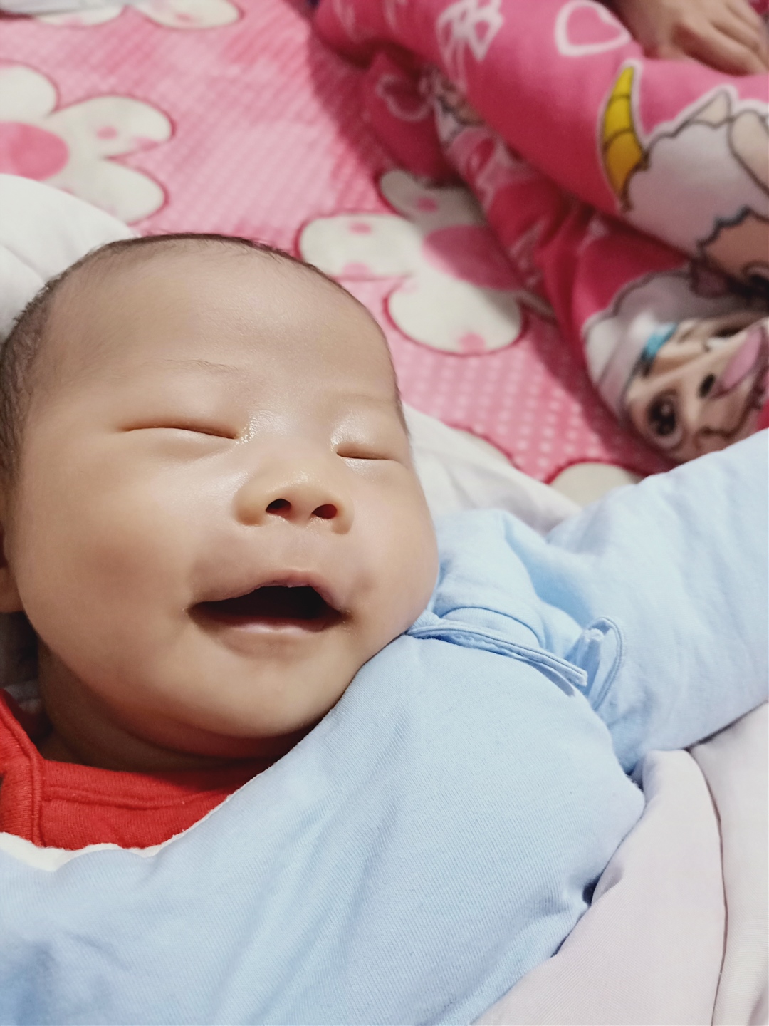 这个可能是没休息好造成的,我十多天的时候也这样,好好睡一觉就好了~