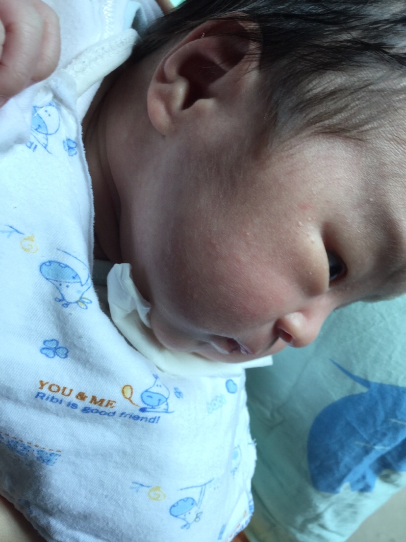 我家也这样,现在月子里医生建议右侧睡,所以只有右脸有,估计是热气。
