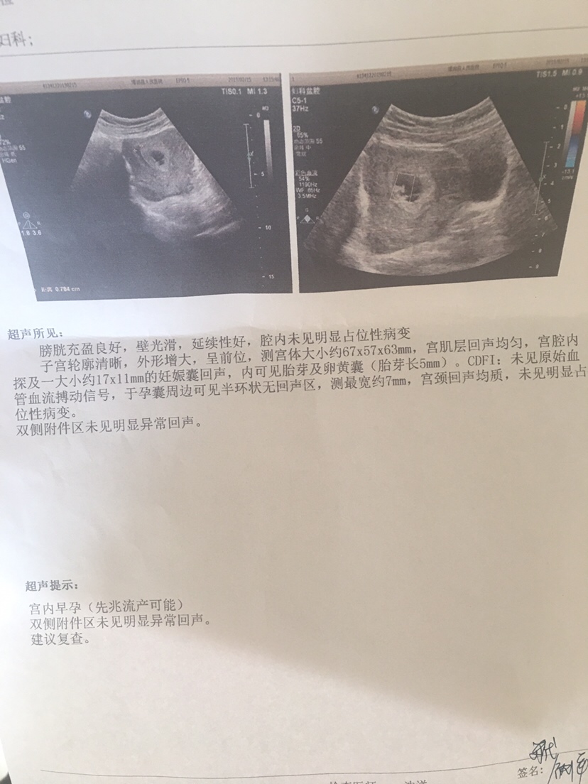 Miss Xie[帖主]:嗯,没有胎心,胎也小,孕酮结果明天才能看到,现在喝保胎药了