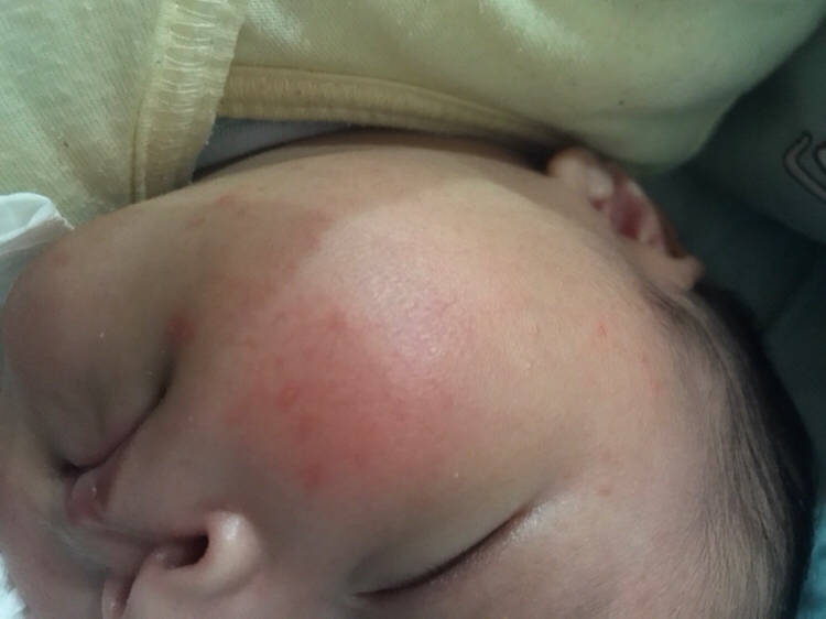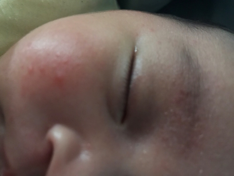 我家也有 我都是给她勤洗脸 抹上绵羊油 第二天就消了 然后一热还是会有的 注意别捂到