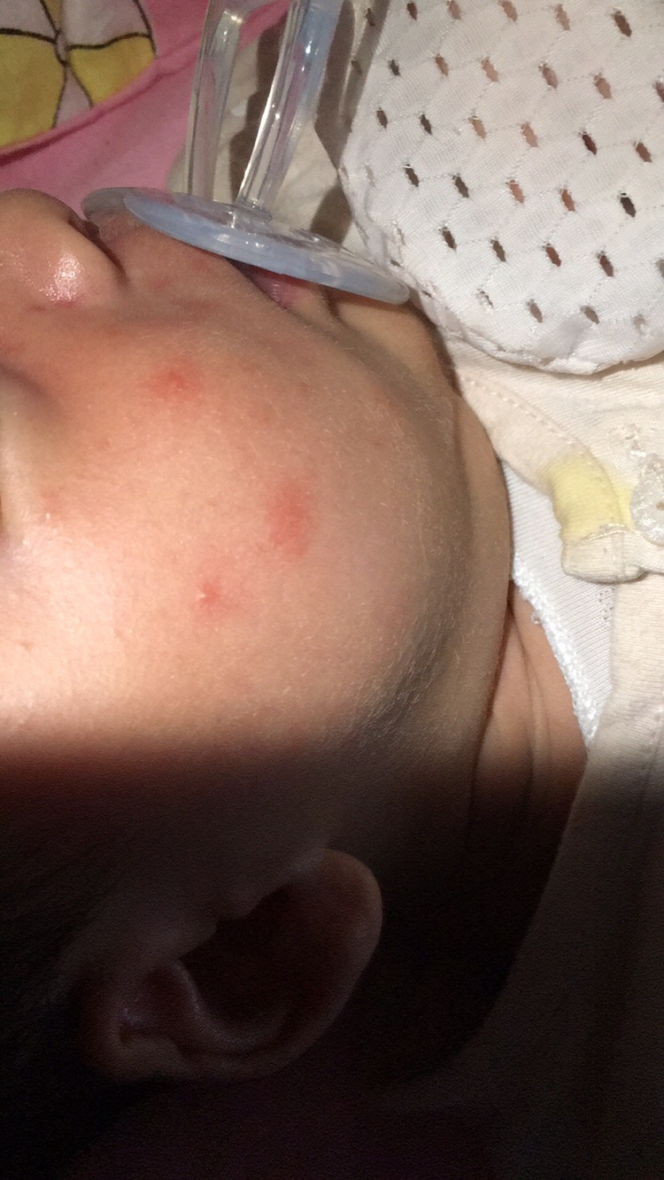 大块的红有点像奶藓,只要奶碰到宝宝的脸就会红,我宝宝就是,清水洗洗就好了。