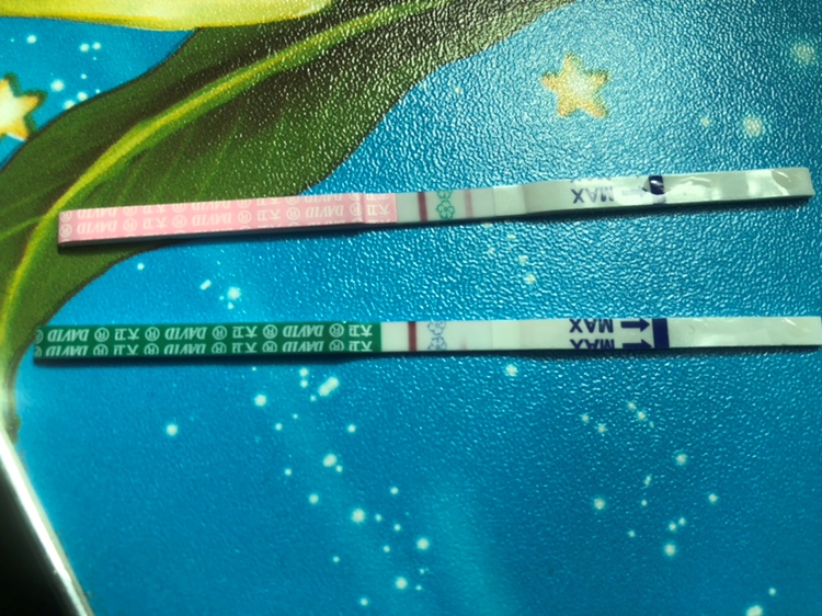 Lei??[帖主]:姨妈都推迟了10天了,早上测的是这个样子,下午测又是白板,不知道是不是串色了