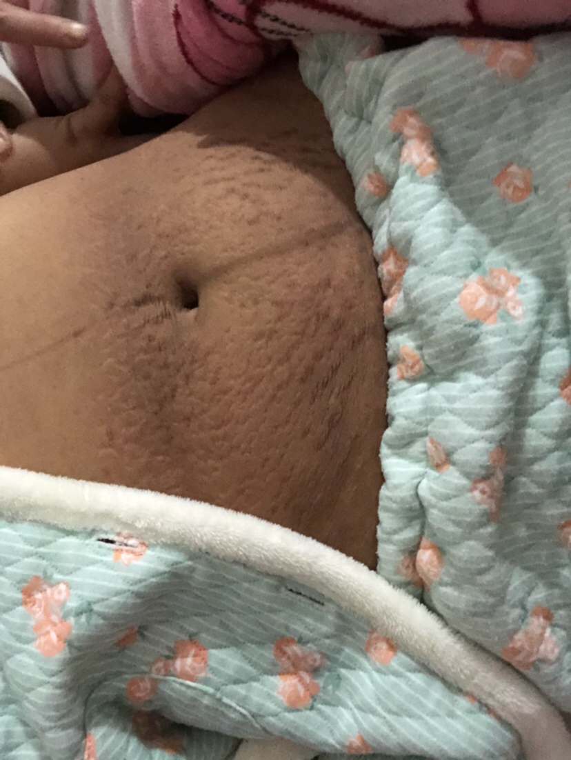 产后的肚子都是这样的啦。有什么好恐怖。起码要三两个月后才能恢复。不发黑