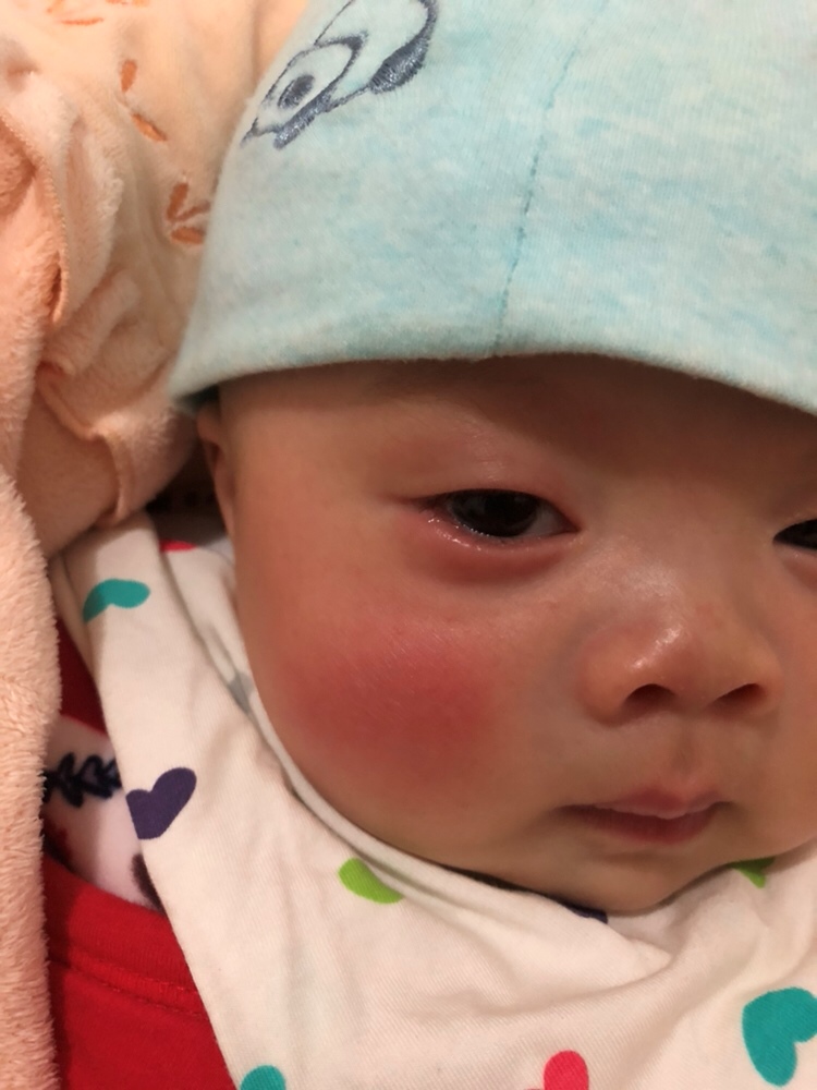 去医院看看吧,看看是过敏还是上火,还是吃你母乳你吃辣椒了