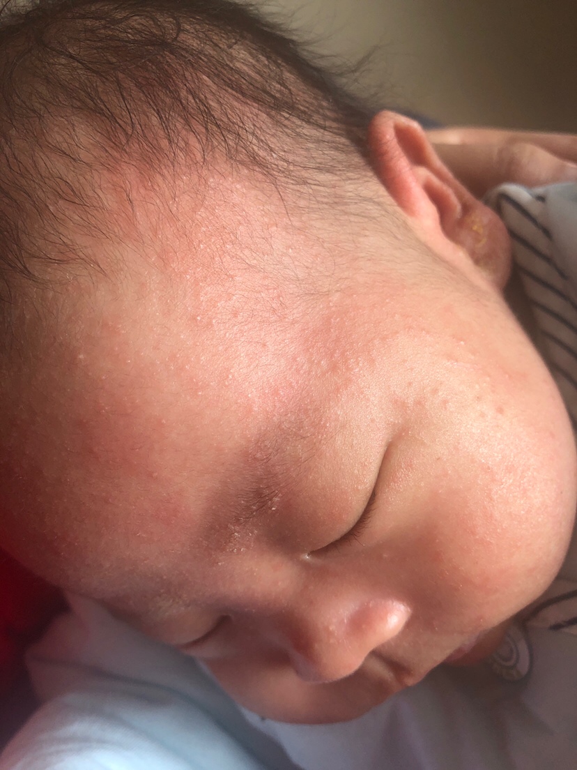 赶紧给宝宝保湿吧。然后买湿疹的药,不要搞的更严重了,宝宝很难受的。保湿我用的凡士林不知道你敢不敢用,或者薇若娜生物膜,这个我也是请教朋友的。医院可以开也可以京东买。我宝宝好了现在就用这个保湿,我自己也会涂还蛮舒服的。