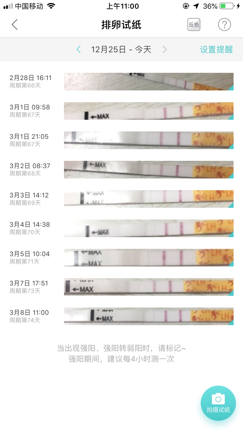 我上个月大姨妈的前一天排卵试纸也是这样子,你在等等测早早孕