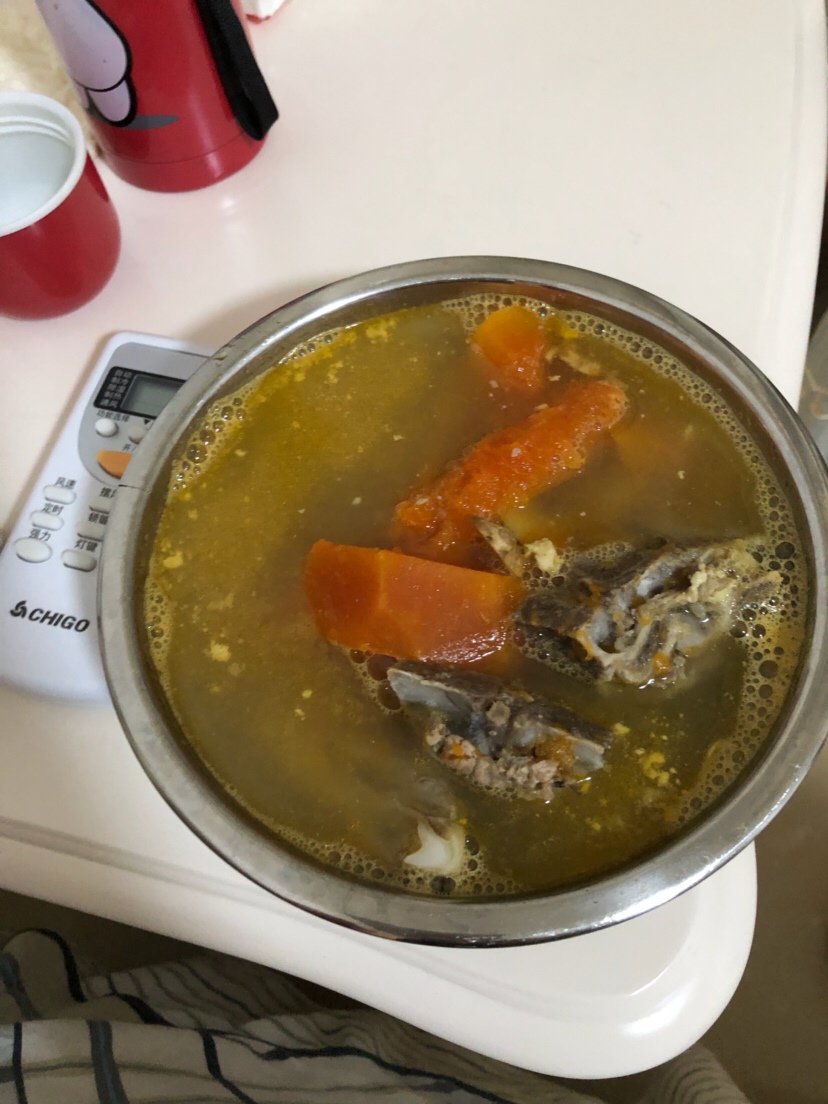 这个汤是经过长时间顿出来的把,不是月子里的汤不能这样顿吗?还有刚生完头几天要以清淡为主最好是喝点粥,肉少吃,因为刚生产完消化那些还没有完全恢复好,生完就吃太油腻不好。