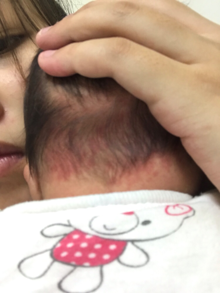 我家也有,是剃完头才发现的,现在三个月已经没有那么明显了。确实是血管瘤,现在一点一点的,不是一大片了