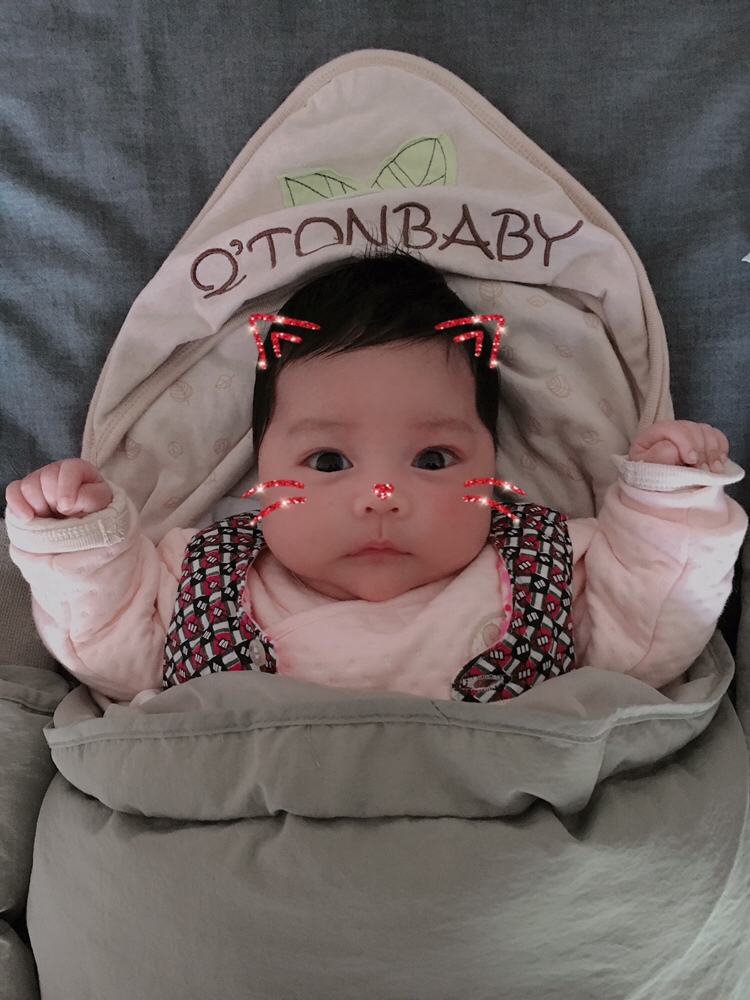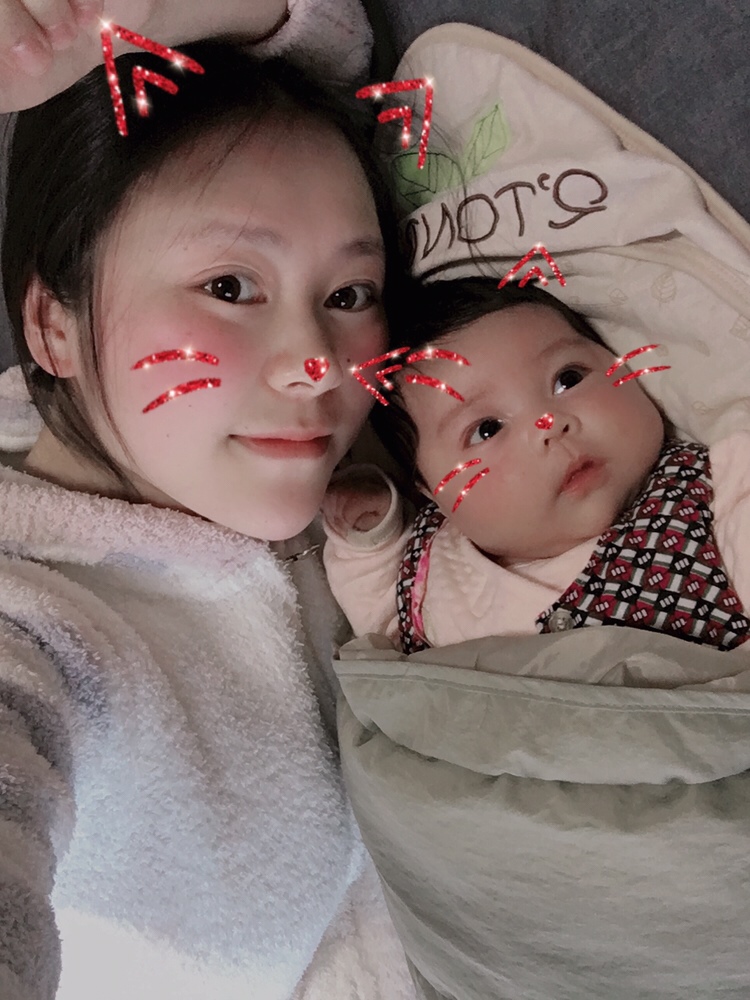 看了眼躺在我旁边的我女儿,眼睛小成一条缝哈哈哈…