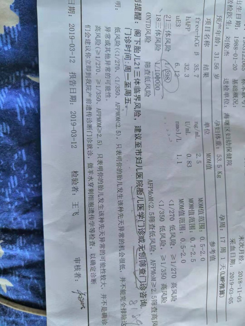 染色体问题,这个参数应该说明了患这个低风险