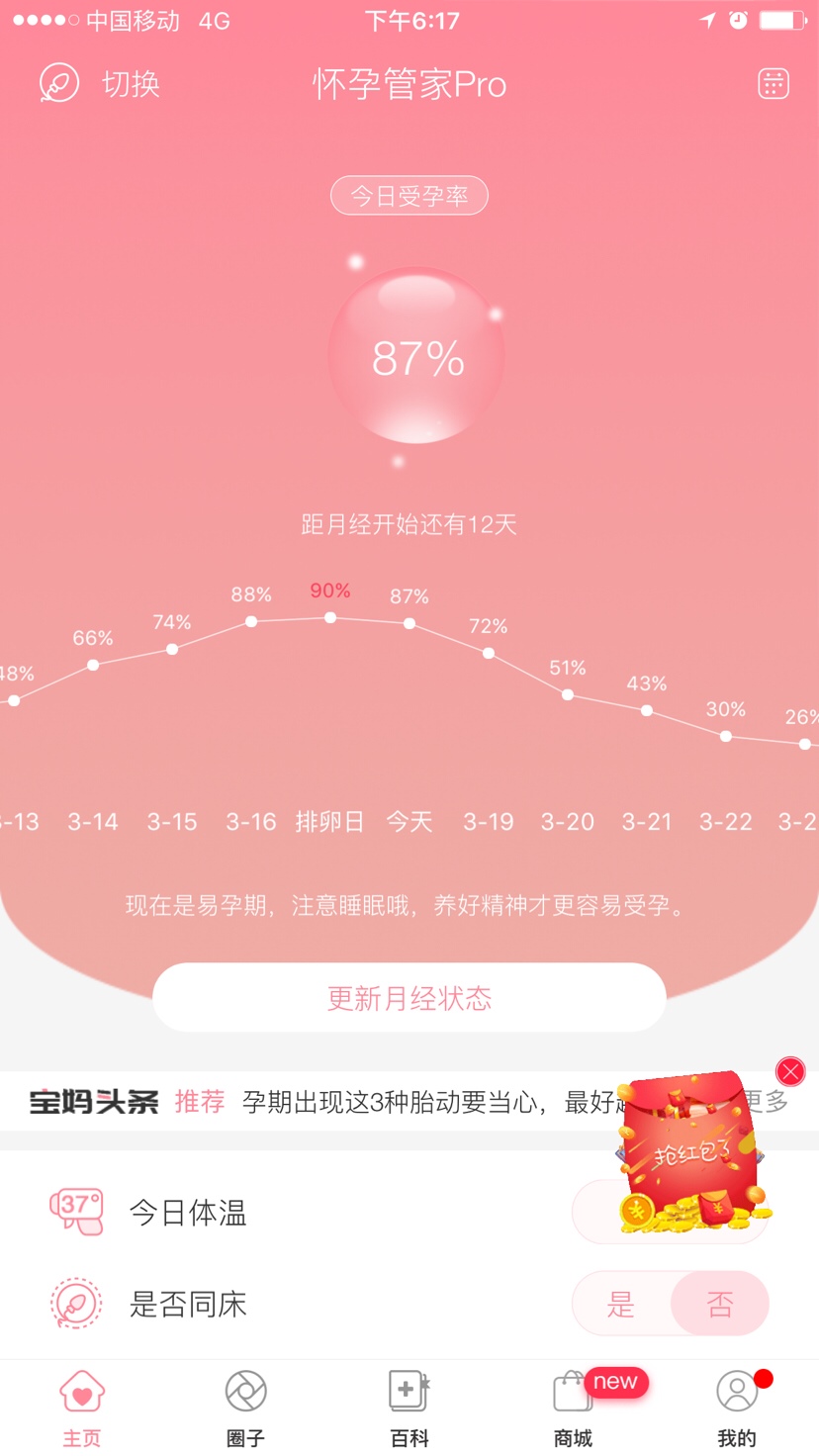 看这个不准的,你用排卵试纸测出来的才准,我就用的试纸测排卵,一下子就怀上了