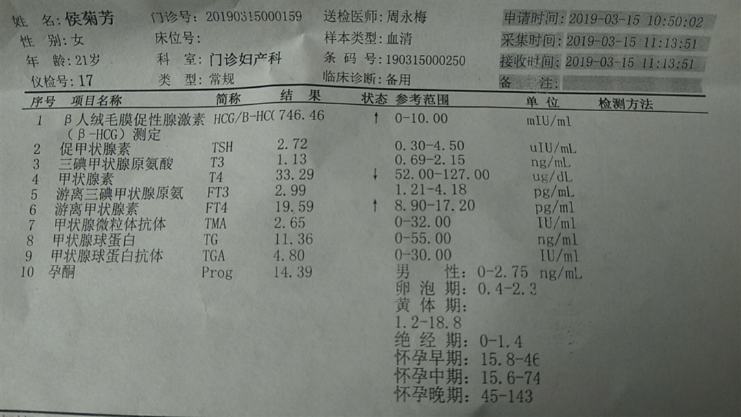 她说正常呀,我都一脸懵逼,看见你这个我发现我连孕酮都没有,你这个多少有周了