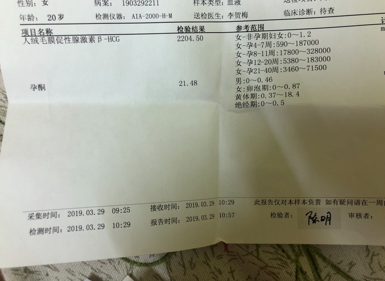 孕酮偏低了!容易引发先兆流产!建议你去大医院看看!我孕酮四十多医生都让我吃孕酮片!现在六十多了还在吃孕酮片!如果你打算要这个宝宝还是建议你好好检查一下