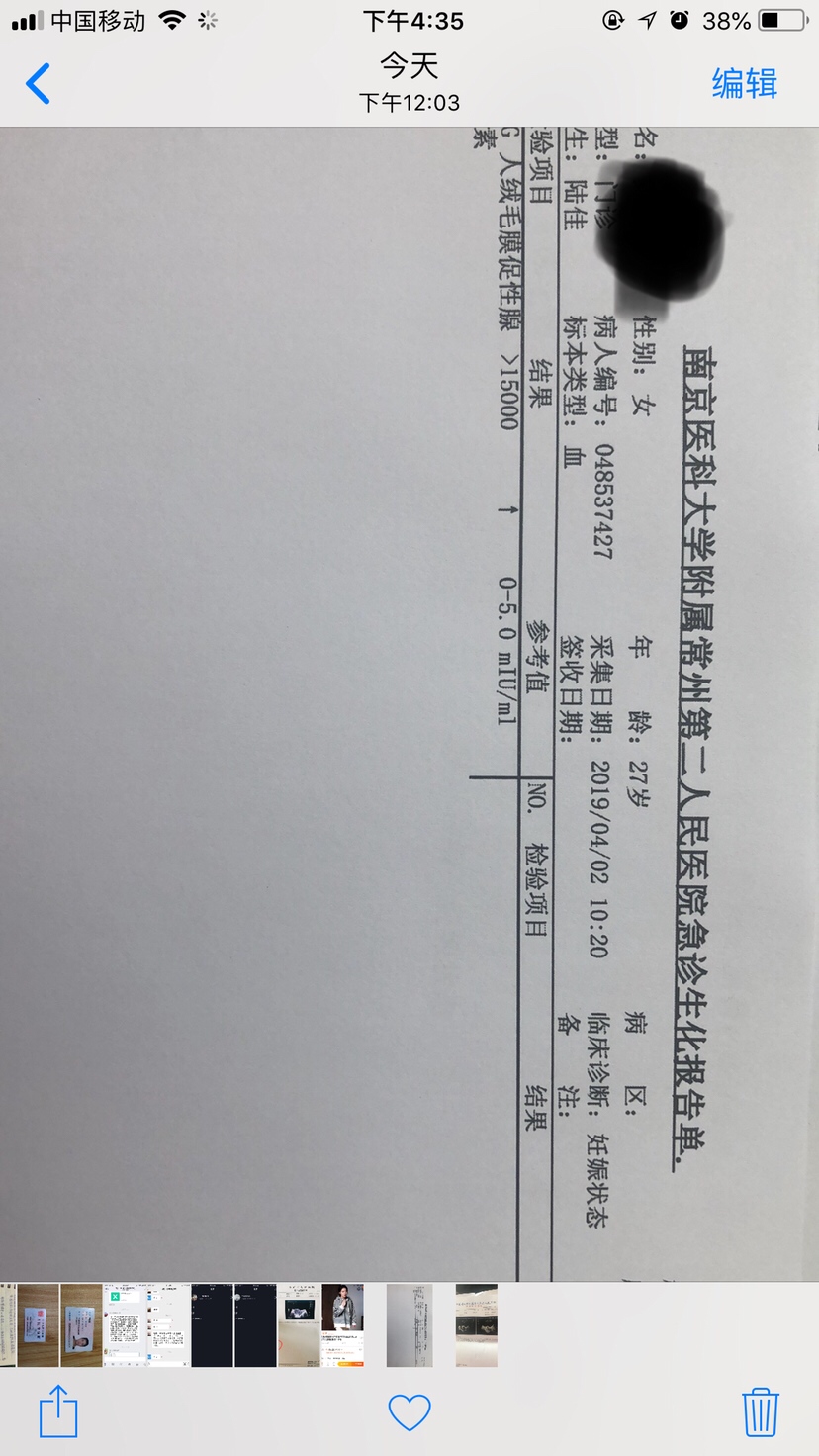 Lin da[帖主]:孕酮查了,3天后去拿报告