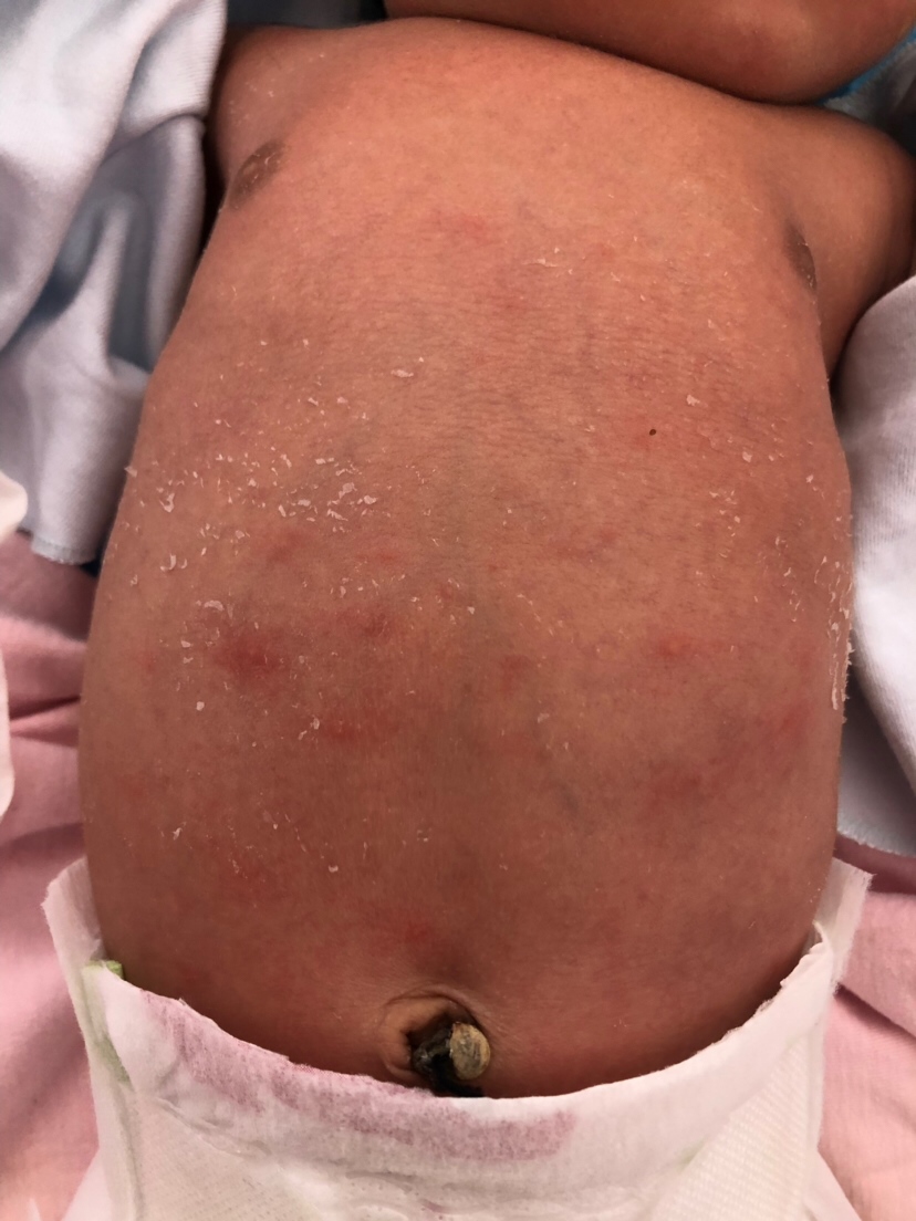 不是热的湿疹就是过敏,先稍微减量衣物试试看有没有变化,湿疹退的快,持续加重就是过敏