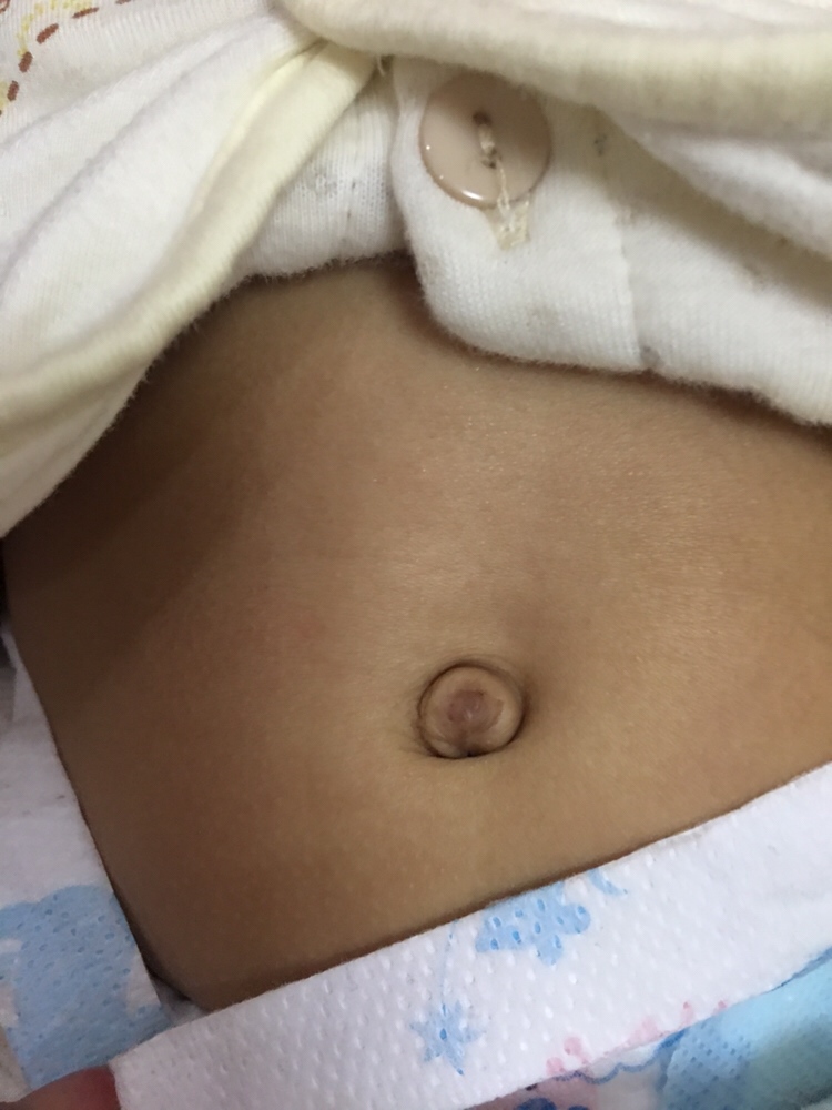 用一块钱硬币压在宝宝肚脐眼那 突出不严重的一个星期就好了