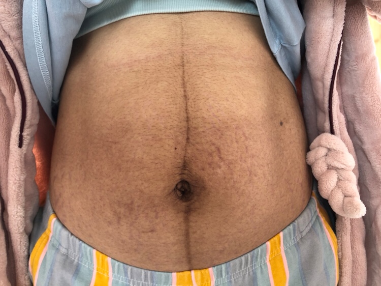 童欢喜[帖主]:不知道呢!怀孕以后肚子就开始长毛、然后妊娠线开始明显的、34周+开始长的纹~ 生之前还没这么黑的、生完以后就这德行了😂😂 表示无奈╮(╯▽╰)╭