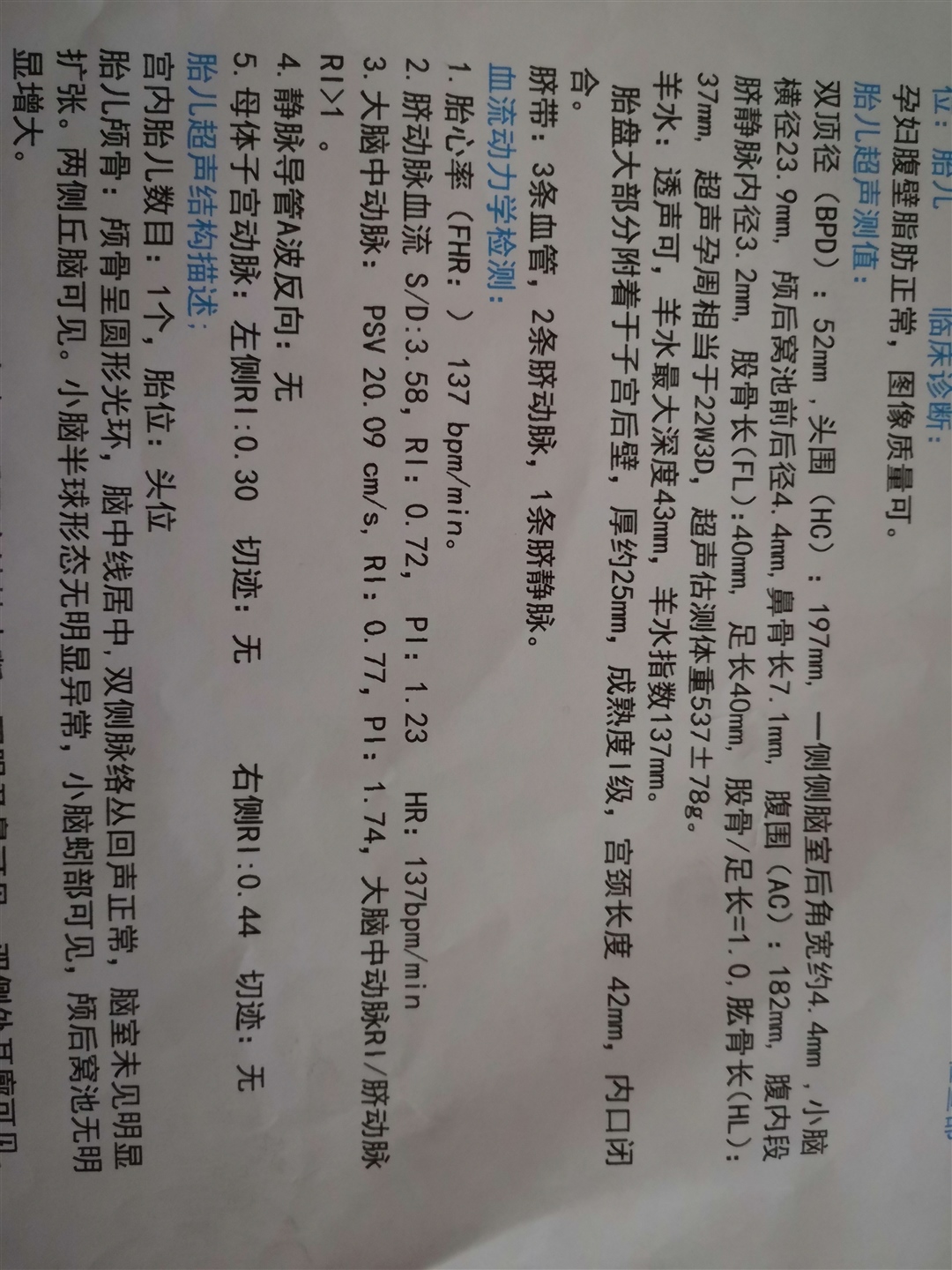 🍀简简单单:哦哦, 我这是22周做的,B超显示21➕3 各个数据都比你的宝宝小点