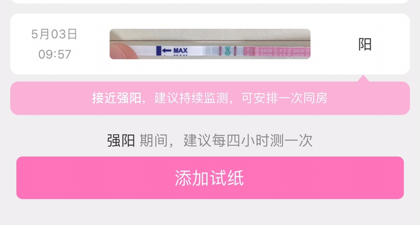 那个软件啥提醒不准的,图片看是今天3号蛮强的,不过还是建议你测到颜色转弱的时候同房,那个时候已经排出来了,容易受孕,现在强阳还没排呢