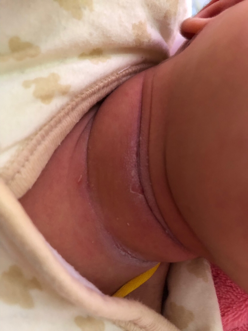 用温水清洗干净,每天观察脖子,腋窝,给宝宝擦爽身粉,虽然我记得在医院医生不建议孩子屁股和脖子用爽身粉,反正这两个多月过来,我用了护臀膏,山茶油,,还是觉得爽身粉好用,