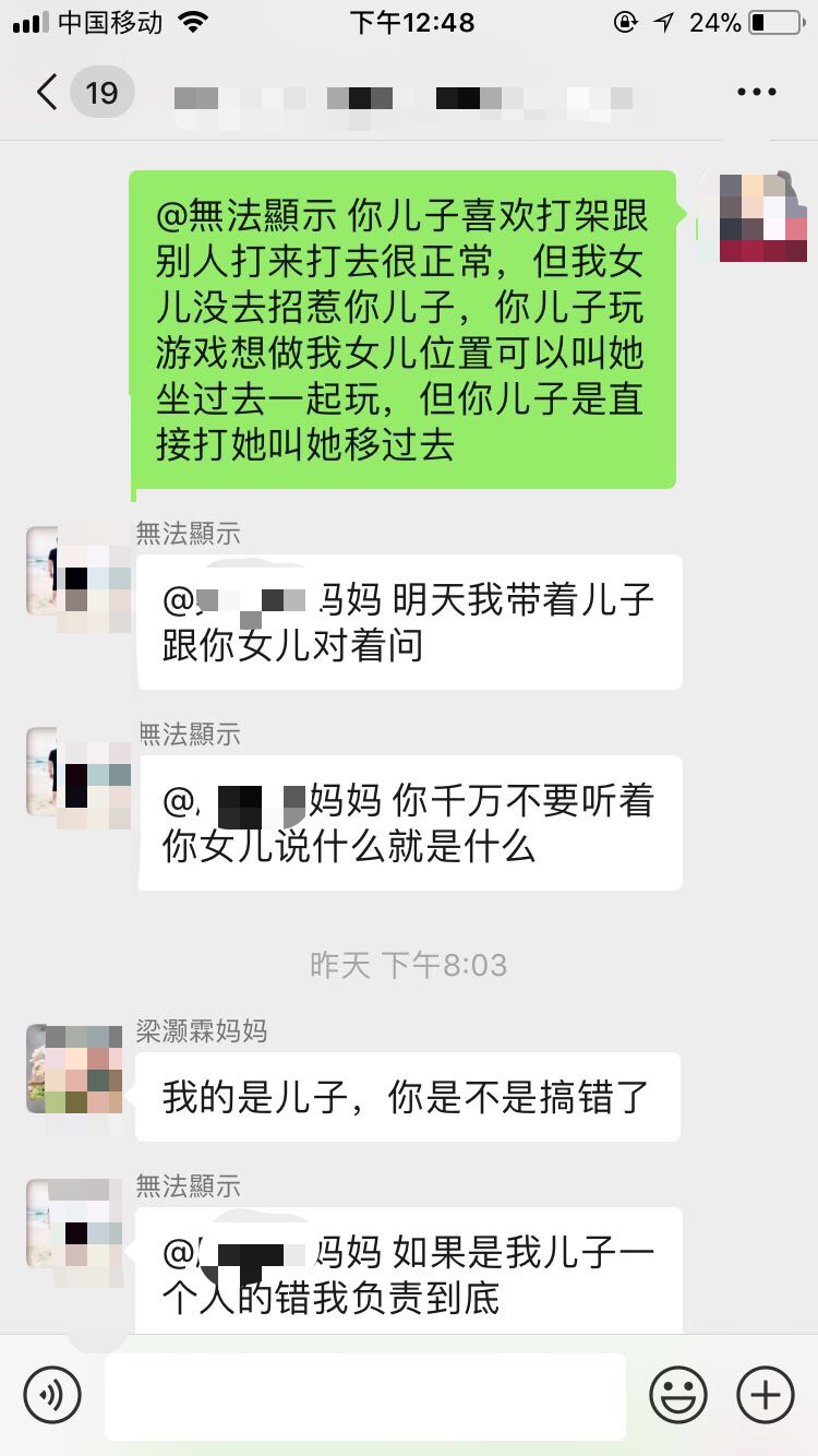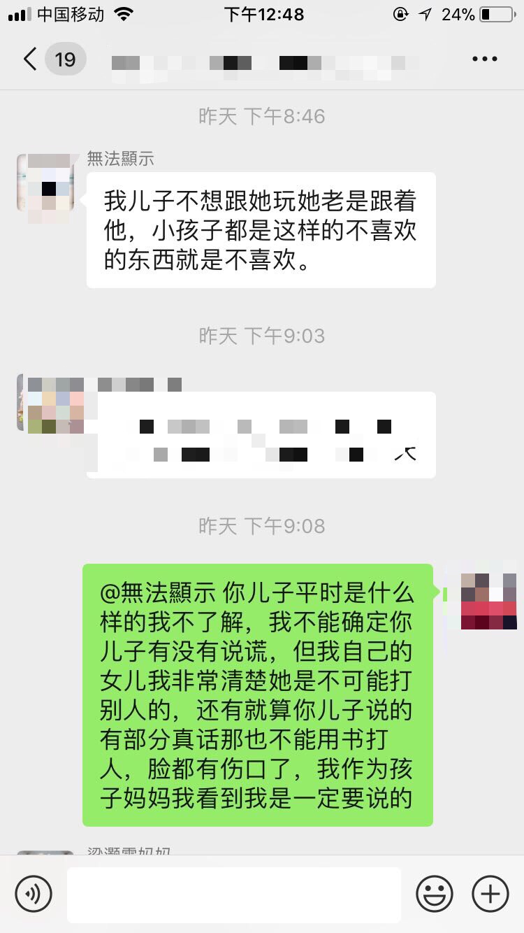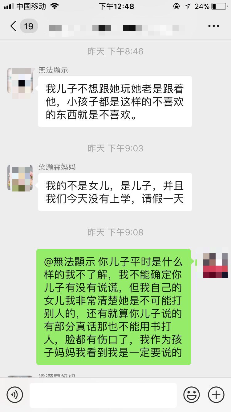 我也遇到过类似的。女儿上一年级的时候和我说有个男孩子老是追闹她,倒也没打,就是追闹她,害她下课都不敢出教室。于是我就加了男同学家长的微信,语气也是比较好的说让他和孩子好好沟通下,女孩子胆小,这样我女儿都不敢出去玩了。男同学家长也是第一时间“我们家孩子不会的,他都很乖的”怎么怎么的,都没有说了解一下情况。于是我就给他家长打电话了,把事情再次说了下。然后我女儿说再也没来招惹过她了。很多家长真的是护短,不管孩子对错,第一时间就觉得别人来找我家茬了的架势