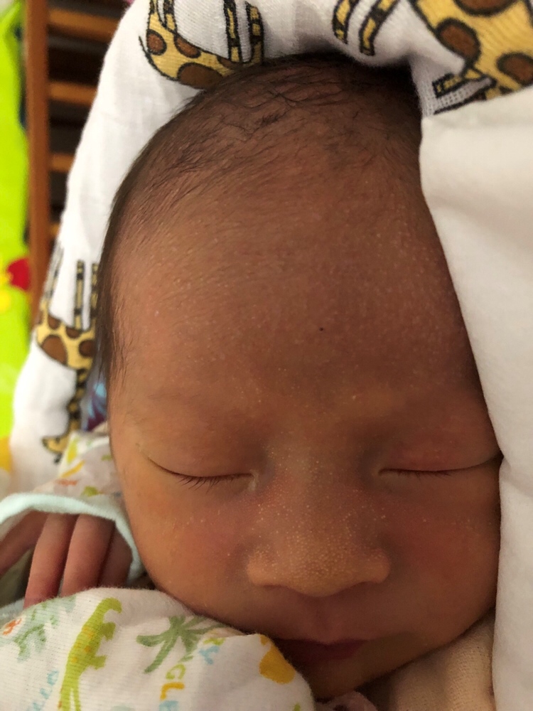 新生儿汗疱疹,没关系的,过几天就会自己消退。