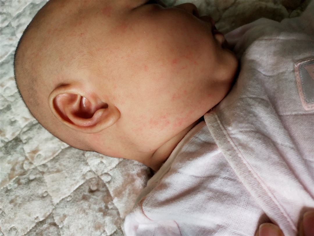 感觉像痱子,一粒一粒是痱子一片一片是湿疹